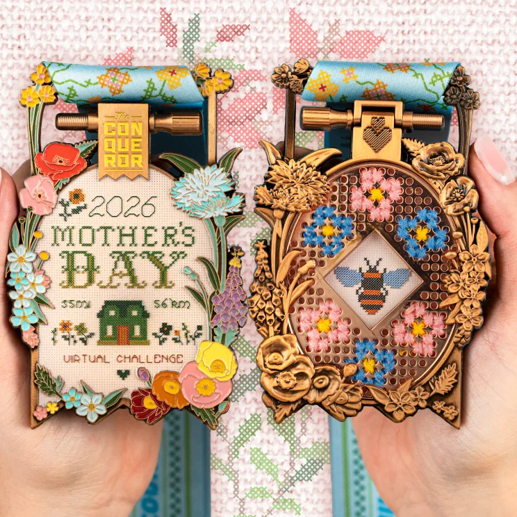 Finish the challenge to earn a beautiful, customisable medal. You can slide a favorite photo inside and cross-stitch a special design.