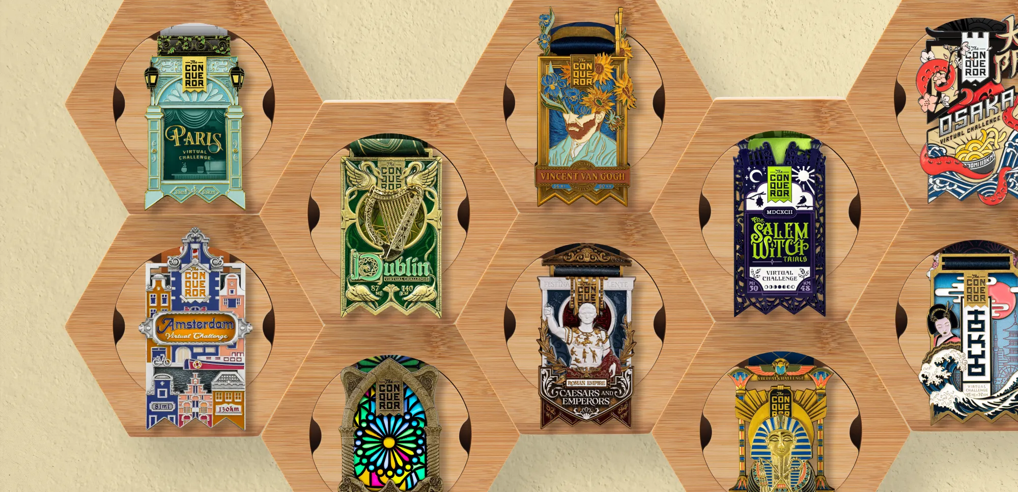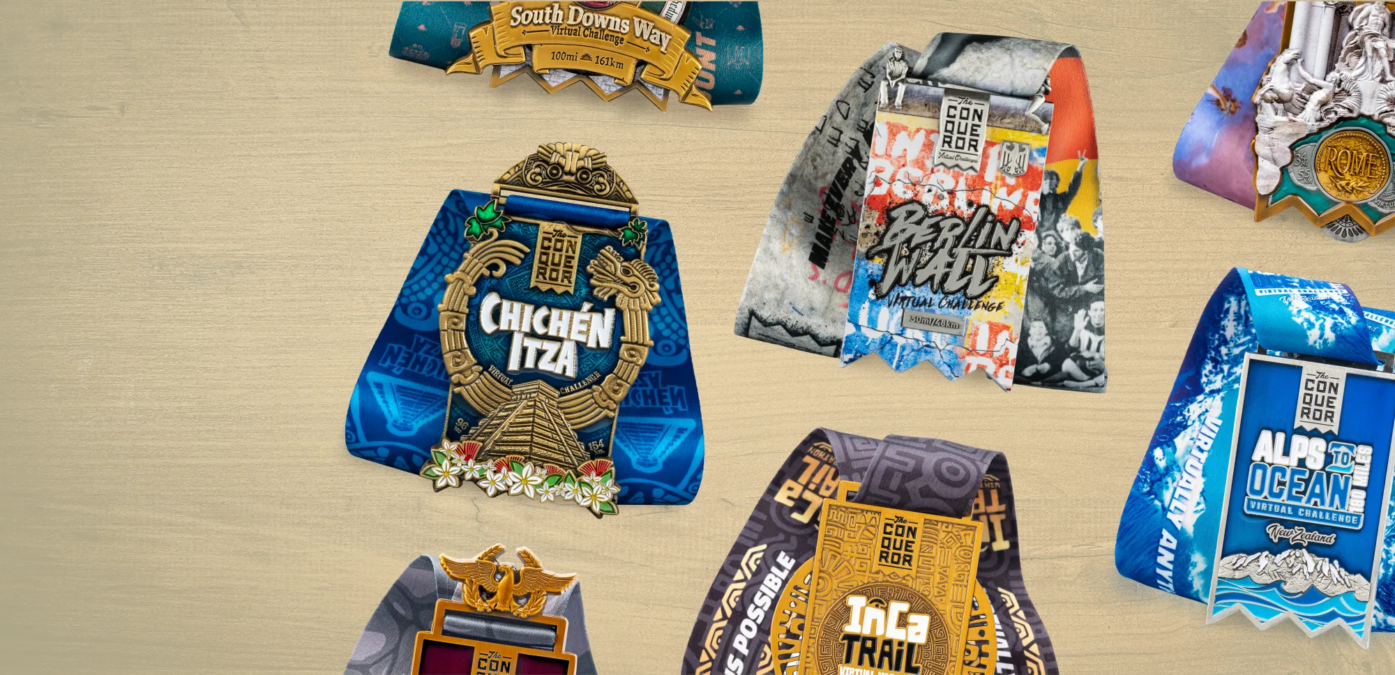 Walk legendary routes, unlock finisher medals, and build a collection that reflects every step of your adventure.